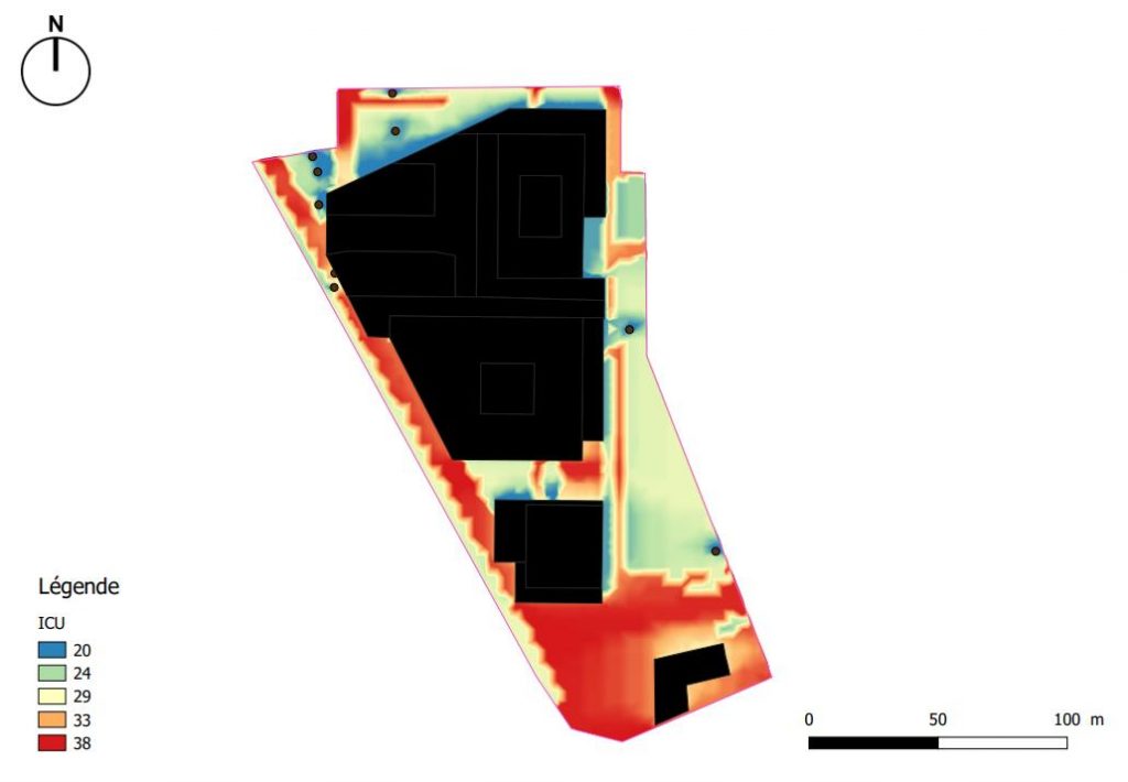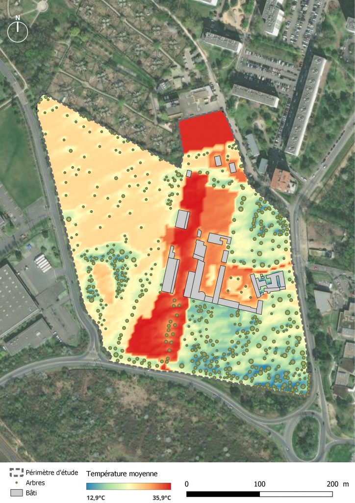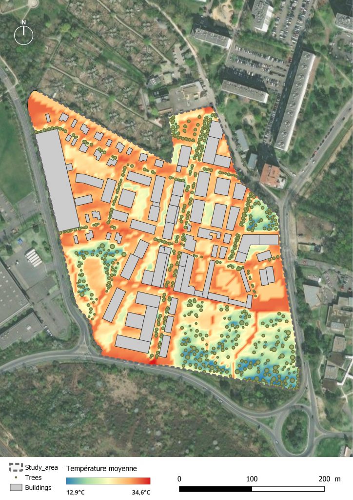 Les résultats sont présentés sous forme de cartographie des températures au sol, un traitement statistique a également permis de quantifier les évolutions notables selon les zones étudiées.